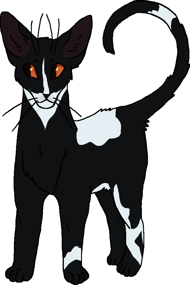 Estrela Alta (Ing. Tallstar) é um gato preto e branco com uma cauda bem longa e olhos âmbar.